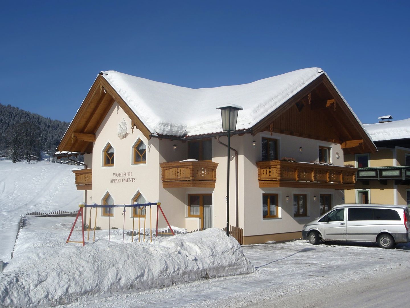 The quietly located house is about 700 m from the centre of Flachau and about 1 km from the Starjet ski lift in the Salzburger Sportwelt ski area. The ski bus stop and the entrance to the cross-country ski trail are right next to the accommodation. In good snow conditions, it is possible to ski down to the accommodation. Shopping facilities and restaurants are around 1.1 km away.