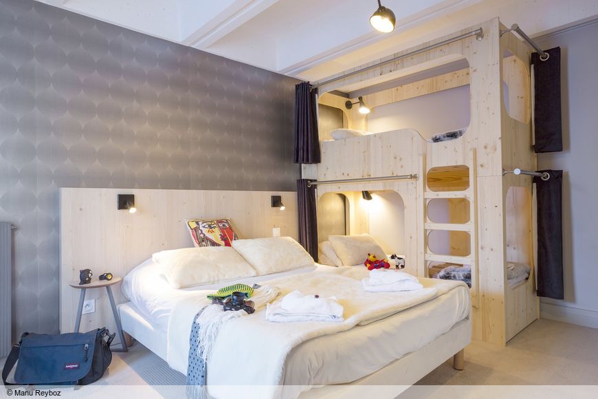 - Room with double bed, bunk bed and TV