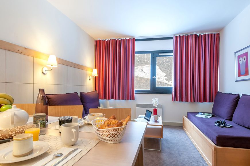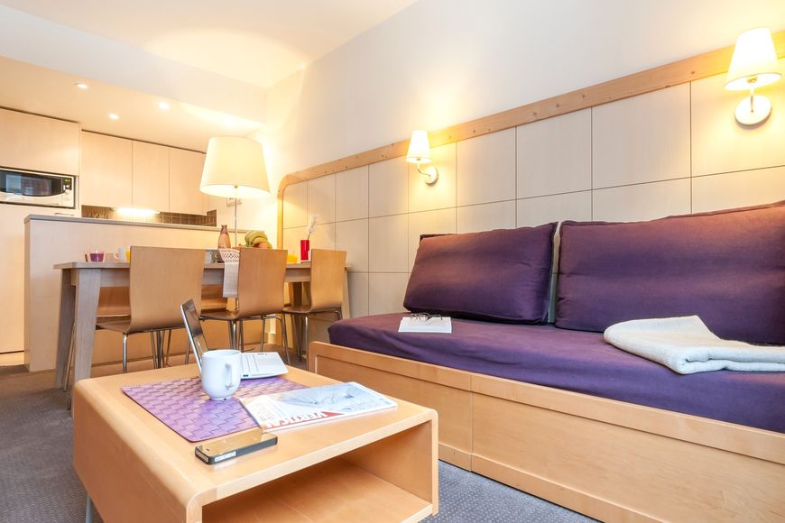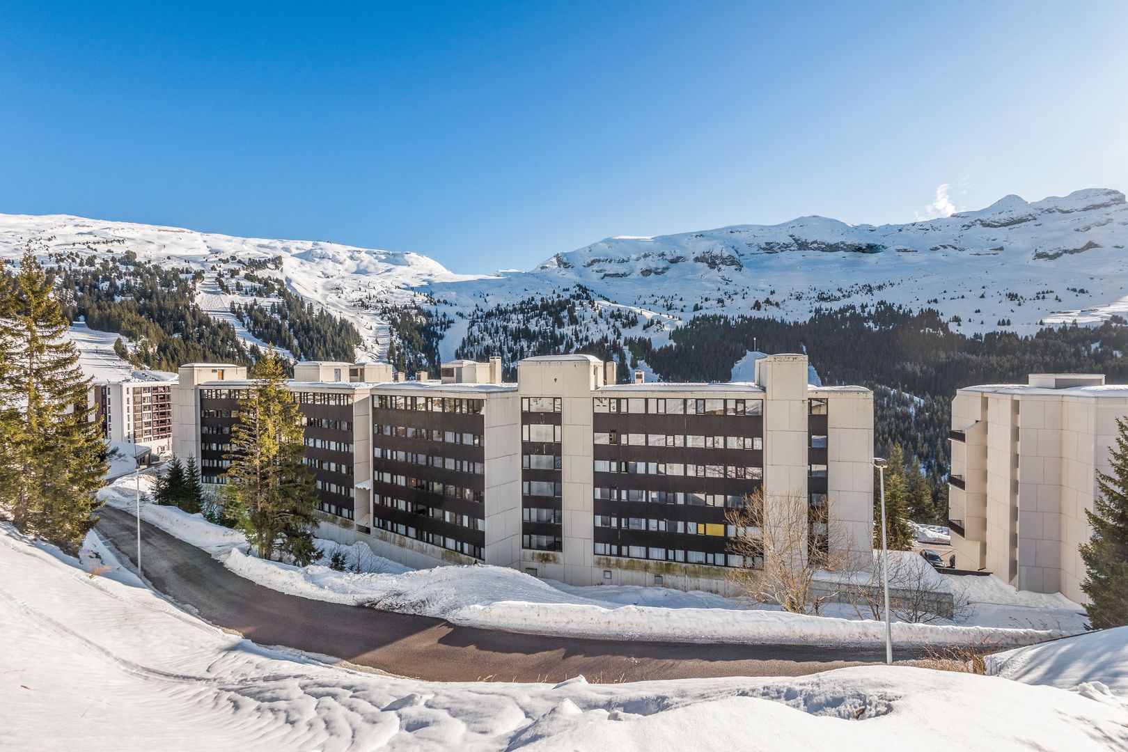 The nicely furnished Résidence La Forêt is located in the district of the same name on an altitude of approx. 1,700 m. It is situated directly next to the piste and the lifts can be reached after approx. 100 m. La Forêt is the highest located and most forested district of car-free Flaine. A free shuttle bus connects the surrounding areas. The resort centre with shops, bars and restaurants can be reached in close proximity (approx. 100 m).