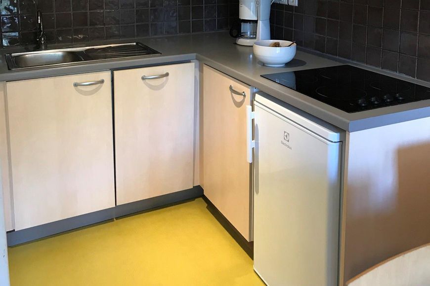 - Kitchenette with refrigerator, microwave/oven, dishwasher and ceran hob