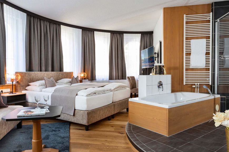 The already included half board PLUS consists of a rich breakfast buffet with organic products, home-made cake specialities and hearty snacks in the afternoon as well as a 5-course superior gourmet menu or themed buffet in the evening with daily salad and raw foods buffet, fresh fruit and cheese variations. Special dietary cuisine, gluten-free, lactose-free and vegan cuisine are also possible on request. There is even a supervised "children's restaurant" area (dinner from 18:00 - 18:30 Uhr) with special children's menus/kiddie buffet in the restaurant.