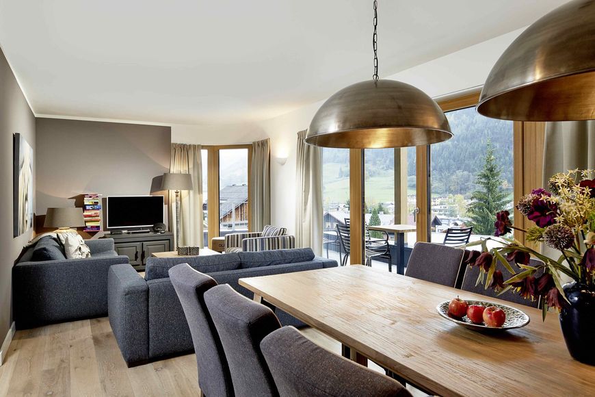 The luxurious 5-star resort Kaprun Glacier Estate is located at the edge of Kaprun, approx. 1.6 km away from the resort centre, in a magnificent panoramic setting with a view of the impressive mountains. You can reach the Maiskogel ski area after approx. 2.5 km and the Kitzsteinhorn glacier ski area after approx. 4 km. The ski bus stops approx. 400 m away from the accommodation, which takes you comfortably to the surrounding ski areas.