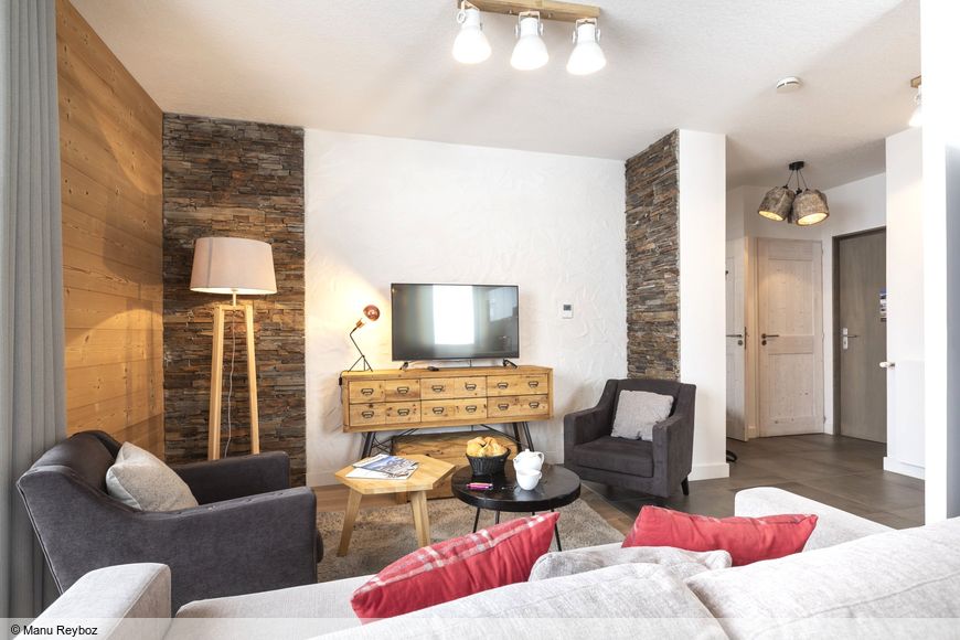 The modern Résidence Le Hameau de Barthélémy apartments complex is located approx. 850 m away from the centre of La Rosière in the district of Les Eucherts at an altitude of approx. 1.800 m. You can access the ski area by taking the Eucherts gondola lift approx. 500 m away, or the Dahu cable car approx. 550 m away. Shopping opportunities as well as cafés and restaurants can be reached within approx. 300 m.