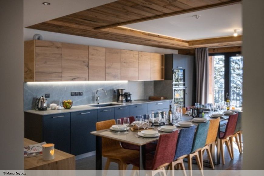 The modern Résidence L’Orée du Bois apartments complex is located approx. 650 m away from the centre of La Rosière at an altitude of approx. 1.800 m. You can access the ski area by taking the Lièvre Blanc gondola lift approx. 1,2 km away, or the Roches Noires cable car approx. 1,2 km away. Shopping opportunities as well as cafés and restaurants can be reached within approx. 700 m.
