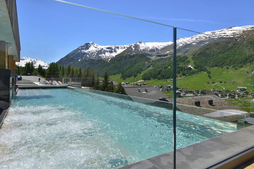 The comfortable 3-star Alpine Resort Bivio (formerly Hotel Alpine Village) is located in a quiet panoramic position, about 1.5 km from the centre of Livigno. The ski bus stops directly at the house. A chair lift and the ski slope are about 300 m next to the house. The complex consists of seven interconnected, three-storey building wings.