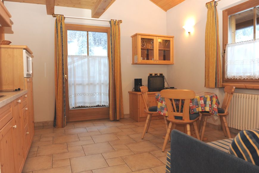 The friendly accommodation Apartments Le Cascate (formerly "Marissa") is located in a quiet and sunny spot at the southern end of Livigno. The Palipert ski lift which offers access to the entire Carosello ski area, is only around 150 m away. Pubs and bars and some shops are to be found close-by and the nearest ski bus stop is directly at the accommodation. The cosy accommodation offers Wi-Fi (for a fee), a heated ski depot and free-of-charge parking spaces as well as a parking garage which can be used if paid locally.