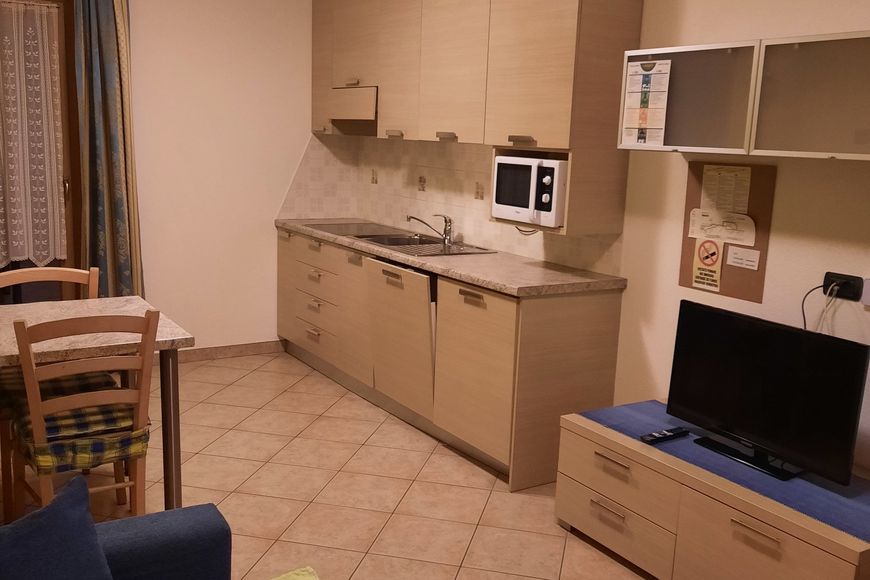 - Kitchenette with ceramic hob, dishwasher, coffee maker, refrigerator with freezer and microwave