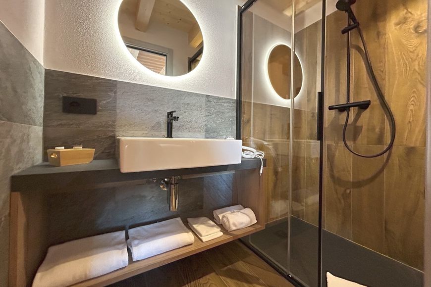 - Bathroom with shower, WC and hair dryer