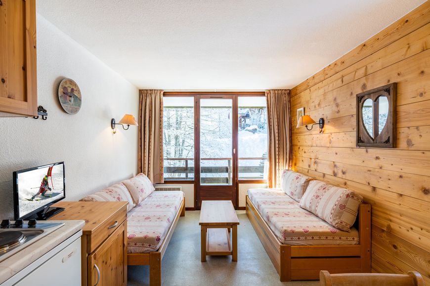 - Living/sleeping area with kitchenette, 2 single sofa beds or a double sofa bed and TV