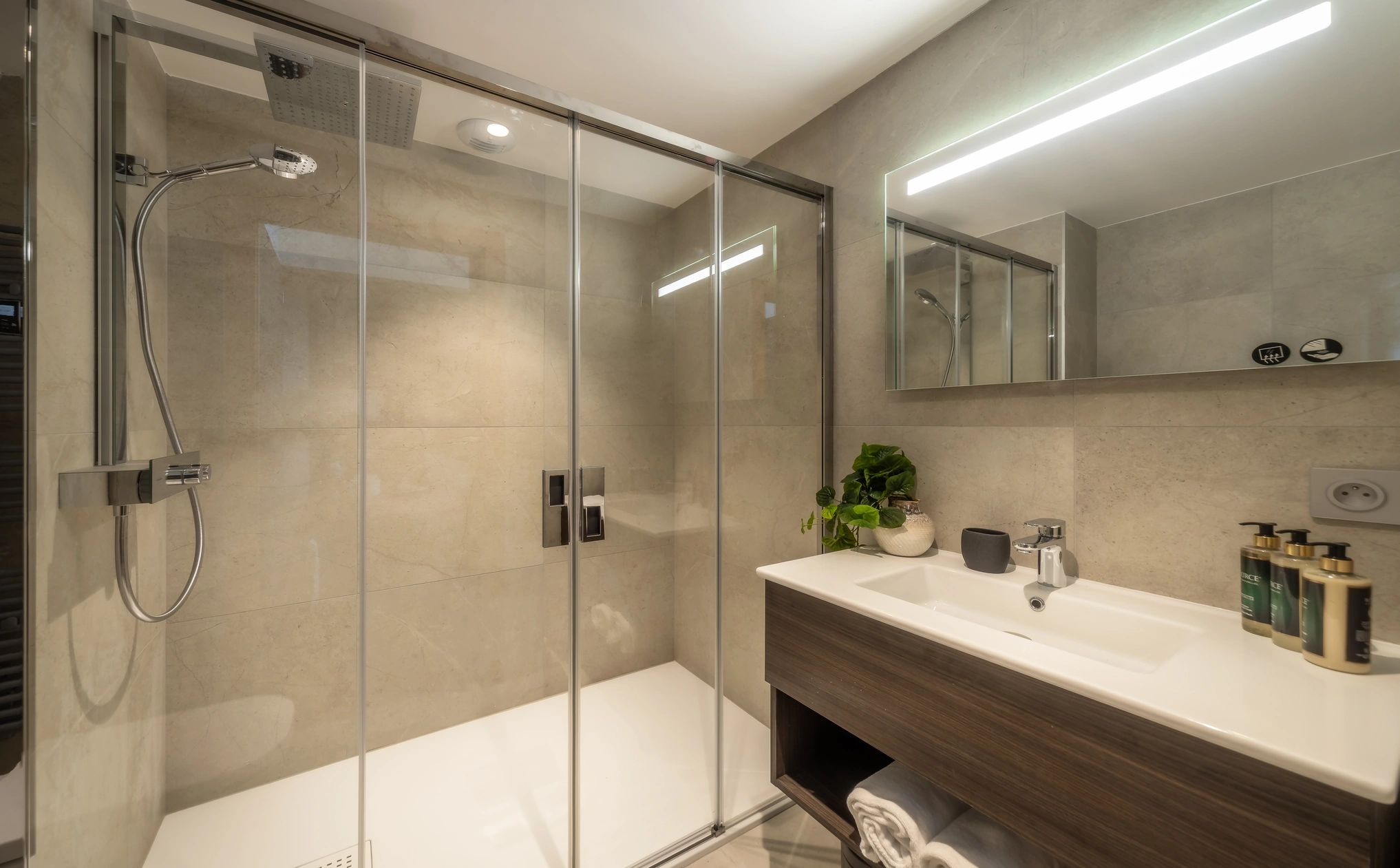 Set within a brand-new luxury residence, this penthouse overlooks the town square with stunning views of Pleney and the surrounding mountains.