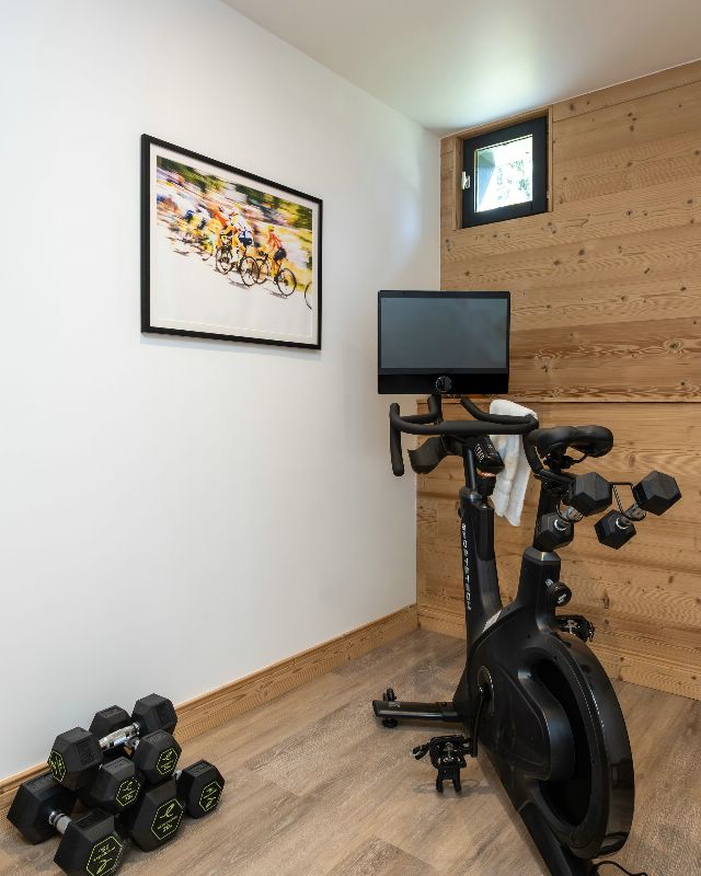 - Gym with exercise bike, bench and selection of weights