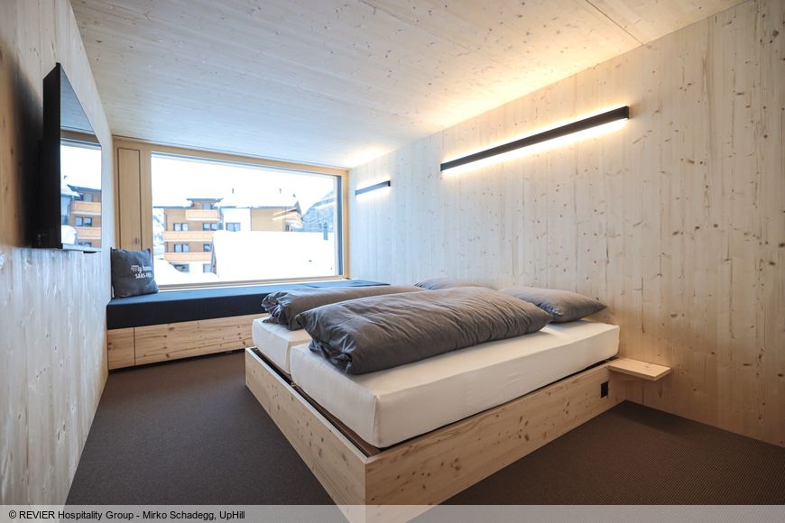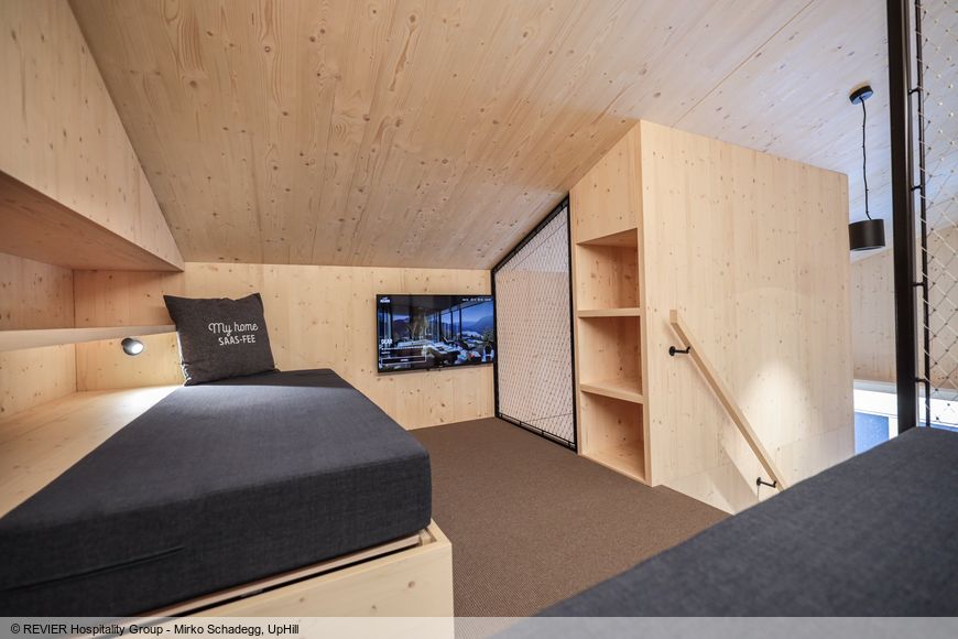 The Revier Mountain Lodge, opened in January 2025, is located just 200 m from the centre of Saas-Fee. The ski bus stops in the immediate vicinity of the accommodation and takes you to the Alpin Express lift, which is around 500 m away. The nearest shopping facilities are around 400 metres away.