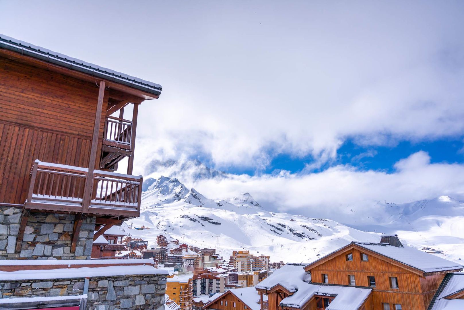 The cosy "Chalet Chamois" apartments complex is situated approx. 250 m away from the centre of Val Thorens. You can access the ski area by taking the Télésiege Pionniers gondola lift approx. 150 m away, or the Télésiege Cascades cable car approx. 1,1 km away. Alpine skiers can get on a slope directly at the door. Shopping opportunities as well as cafés and restaurants can be reached within approx. 100 m.