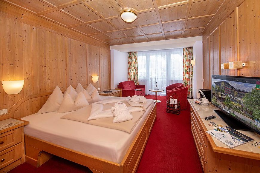 - Room with double bed, double pull-out couch (suitable for children aged 12 and under), TV, telephone and safe