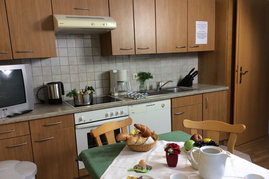 - Kitchenette with refrigerator and freezer compartment, hob, coffee machine and toaster, some with oven